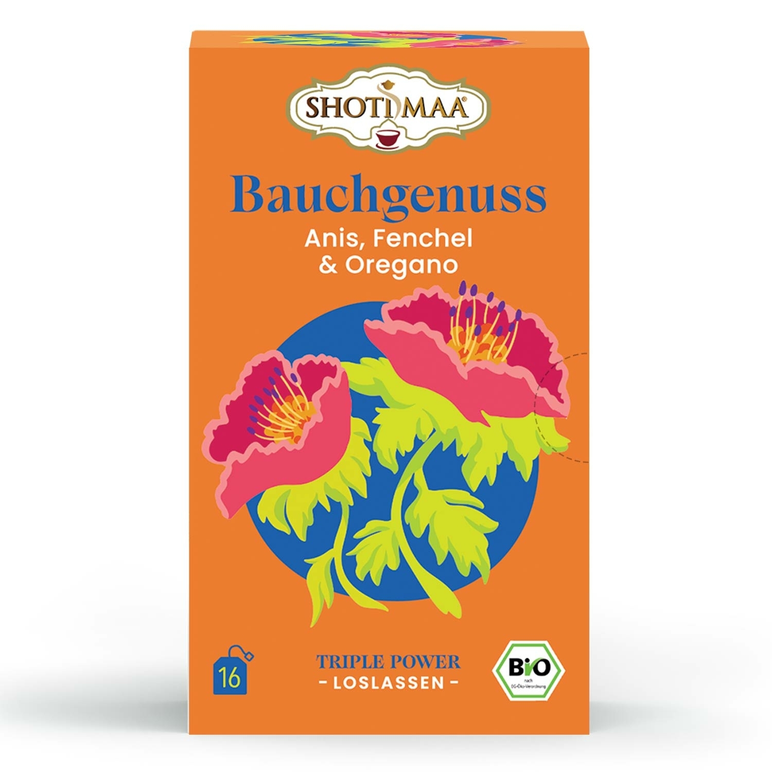 Concentratevi completamente sul vostro centro e godetevi l'armoniosa miscela di tè Shoti Maa "Belly Delight " a base di anice, finocchio e origano. Scoprite il suo delicato aroma e sentite come una sensazione di calore e benessere si diffonderà nel vostro corpo.