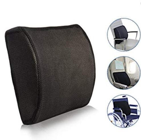 Se passi molte ore seduto puoi provare dei supporti per la zona lombare che agevolano la naturale curvatura della colonna, esistono diversi tipi ma i più diffusi sono come quelli che vedi in foto. Puoi posizionarlo alla base dello schienale della sedia durante le ore lavorative o anche in auto.