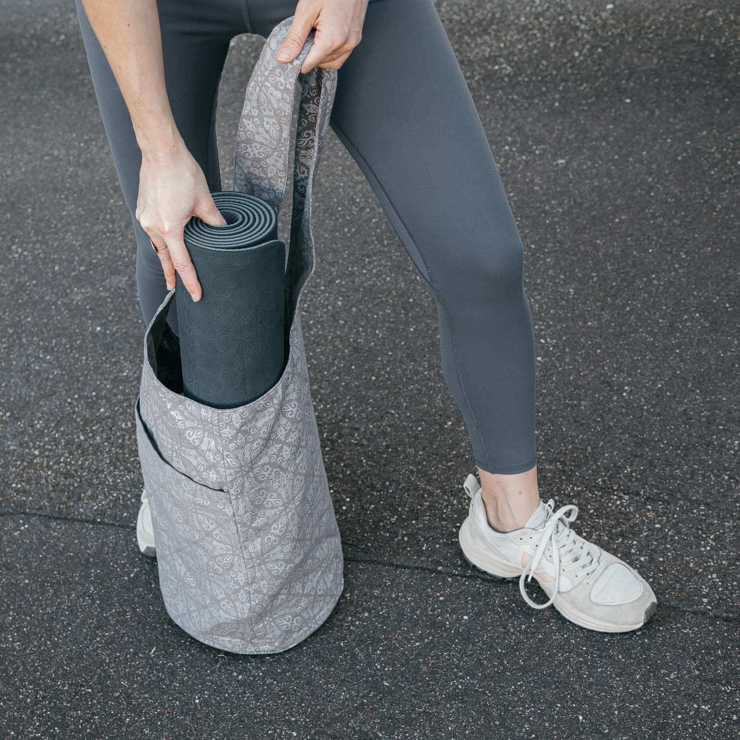 La borsa da yoga è abbastanza grande da contenere comodamente i vestiti oltre a un tappetino. La borsa da yoga con design a borsa larga presenta anche una comoda tasca esterna con un ulteriore scomparto con cerniera dove puoi riporre in sicurezza i tuoi oggetti di valore come il cellulare e le chiavi. La sua funzionalità la rende ideale anche come shopper quando non trasporti un tappetino da yoga.