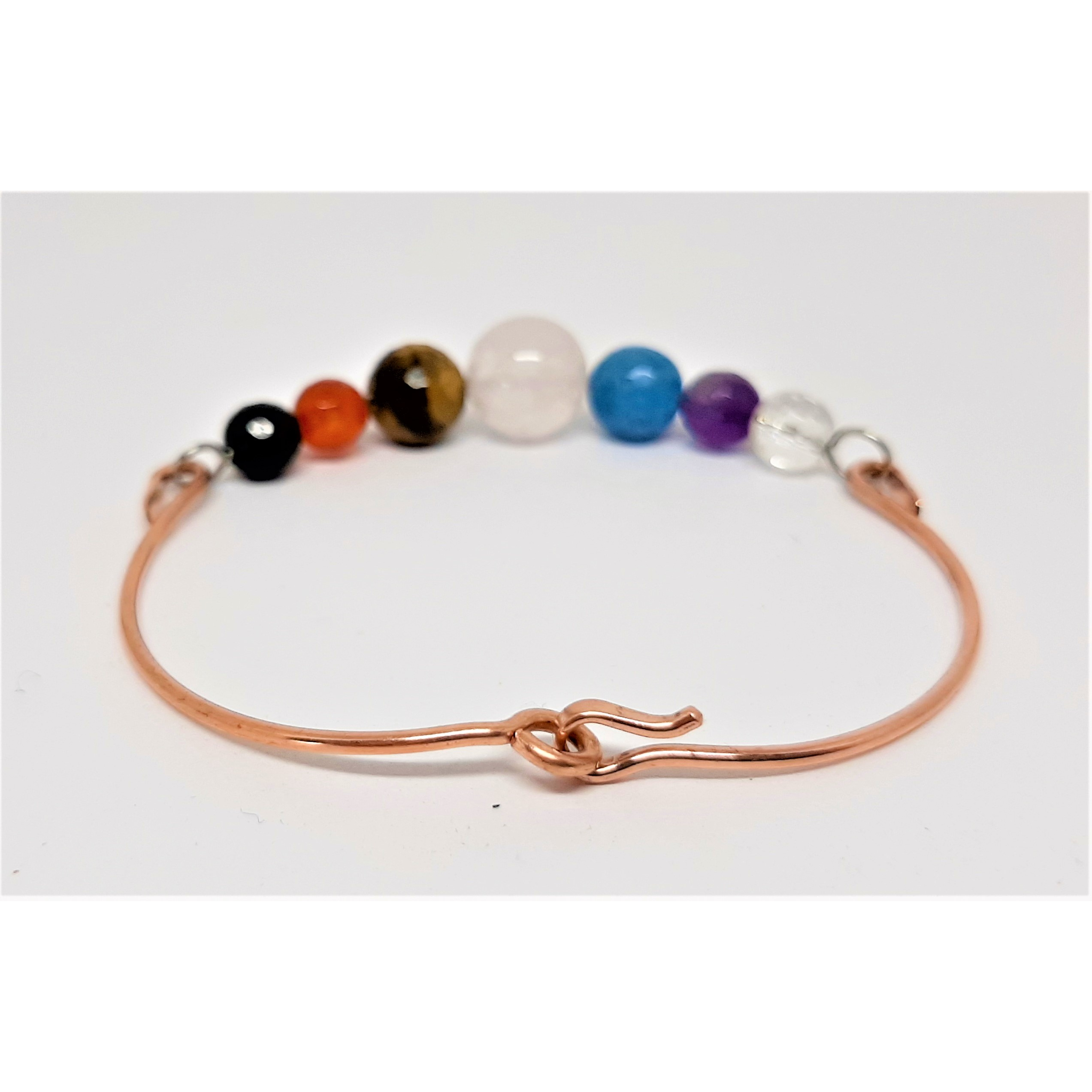 Equilibria i tuoi centri energetici (Chakra) con il contatto di diversi tipi di pietre dure sulla tua pelle e ottieni l'effetto benefico del rame utilizzando il bracciale sette chakra.