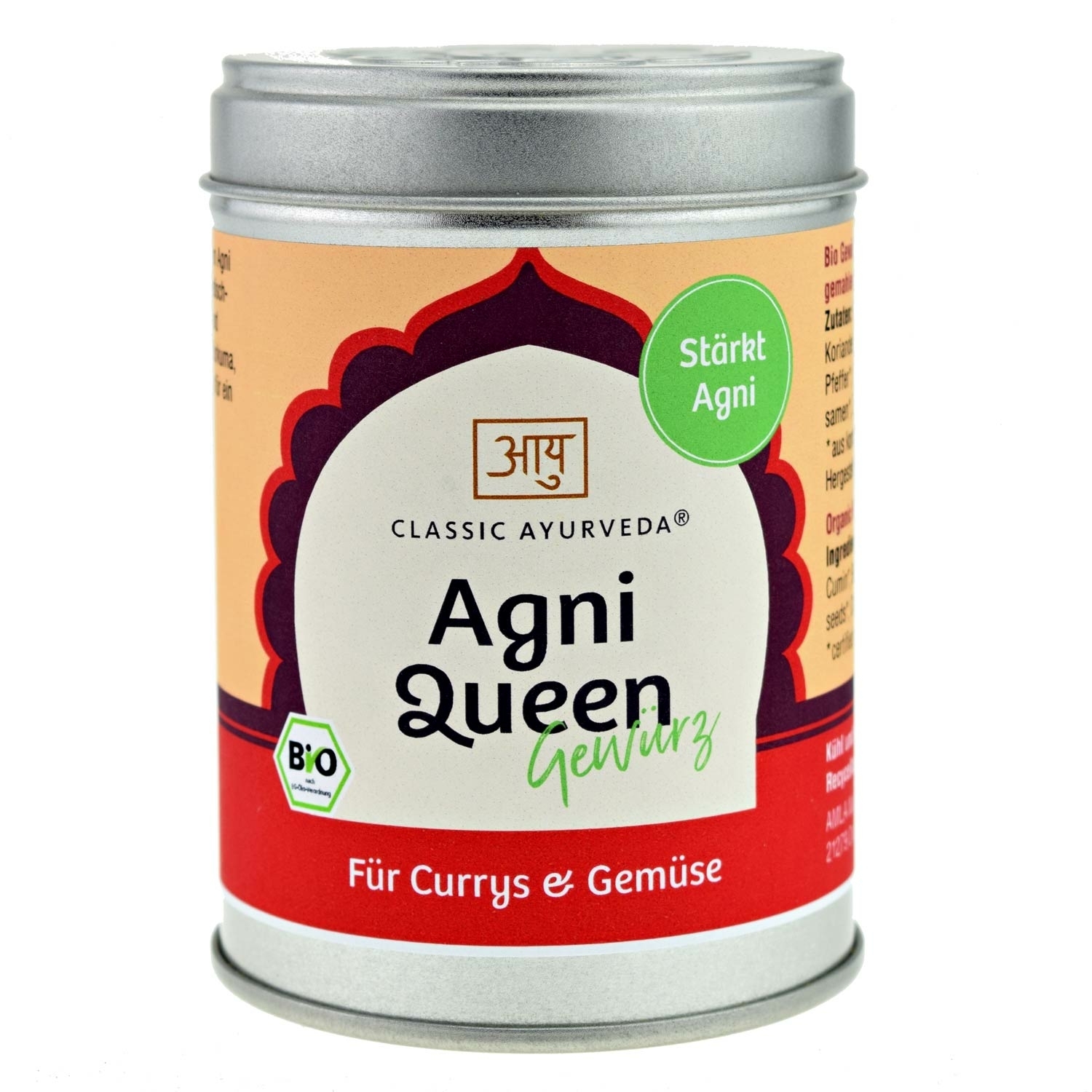 Agni è il nome dato nell'Ayurveda al potere che fa funzionare il sistema digestivo. La deliziosa miscela di spezie biologiche Agni Queen non è solo deliziosa, ma è anche adatta ad aumentare Agni, il "fuoco digestivo".