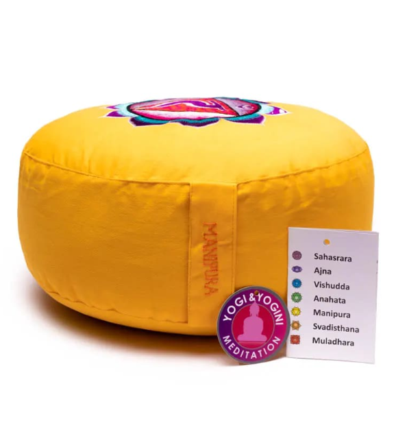 Cuscino da meditazione Yogi & Yogini - Chakra 3 - Manipura - ricamato.