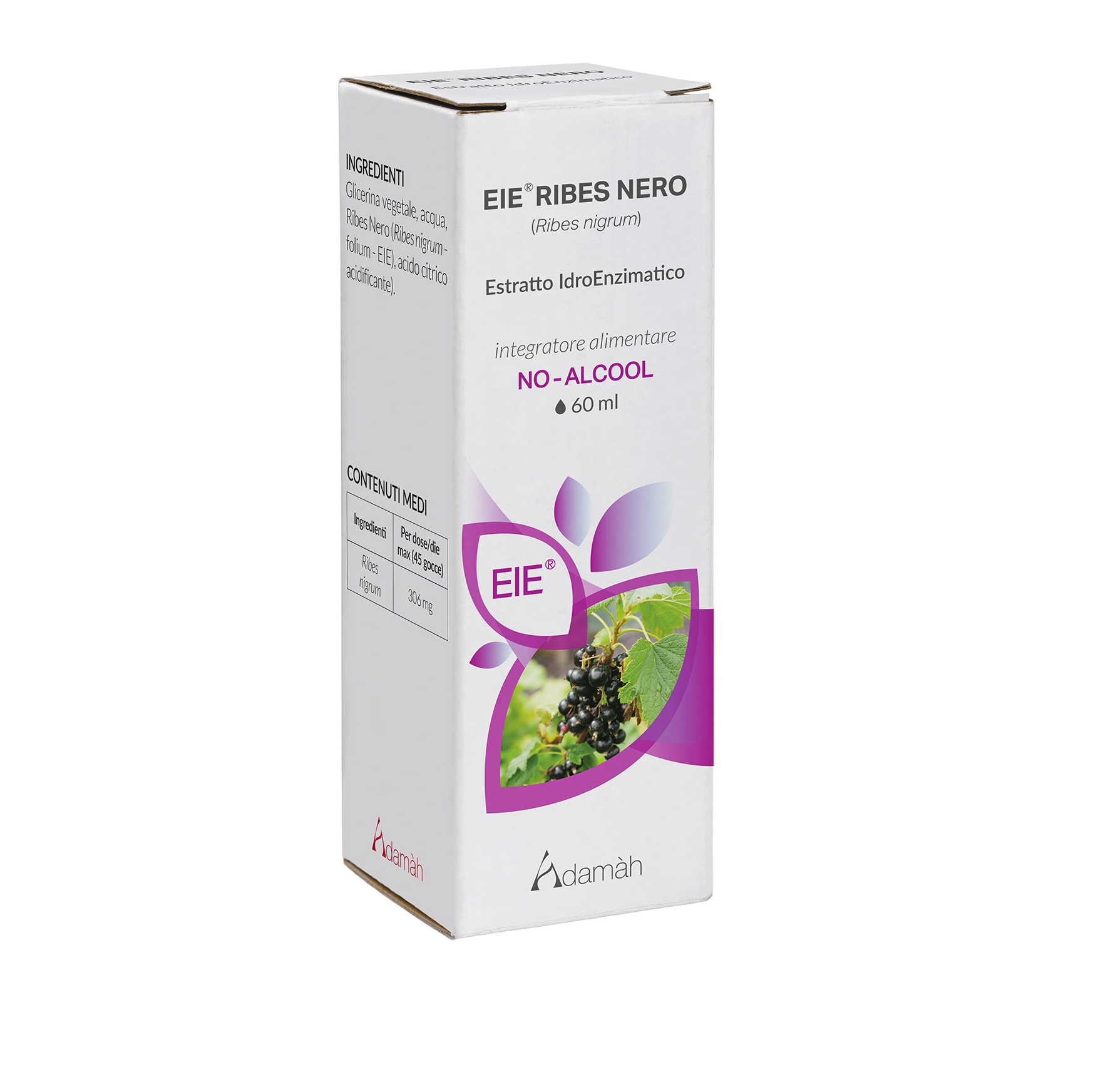 Glicerina vegetale, acqua, Ribes Nero (Ribes nigrum – foglie – EIE), acido citrico (acidificante).