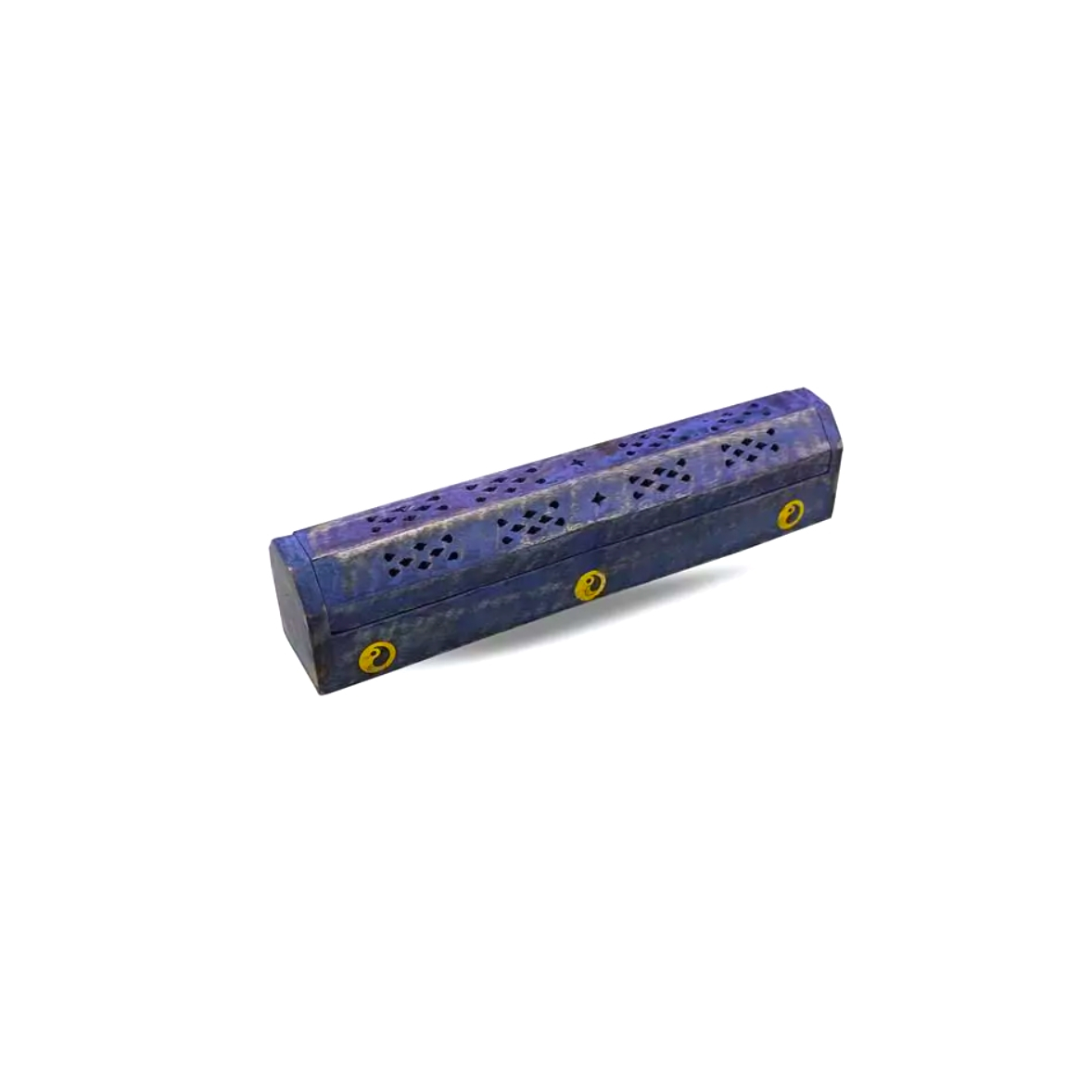 Scopri le varietà deluxe di   scatole di incenso di Green Tree. Questi eleganti accessori per la casa non sono solo da vedere, ma sono anche molto pratici. Puoi aprire e chiudere la scatola della bara e ci sono due fori nelle pareti per posizionare ordinatamente il bastone. Quindi, c'è spazio per bruciare uno o due bastoncini contemporaneamente. Le ceneri cadono nella scatola, che è anche dotata di un vano per riporre i tuoi incensi. Il legno di mango è risciacquato di viola ed è intarsiato con simboli yin yang in ottone.