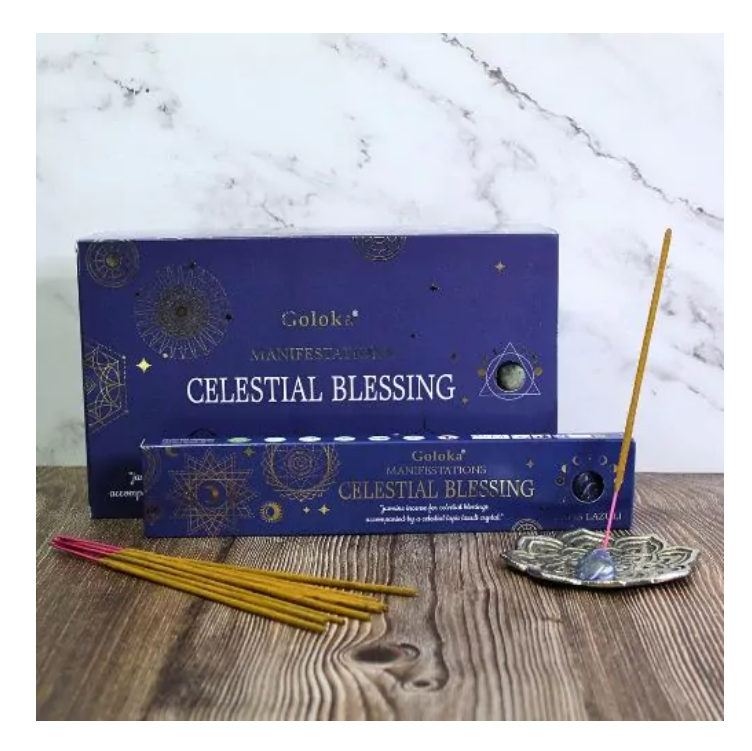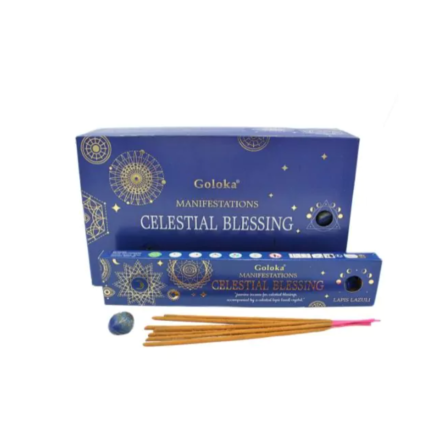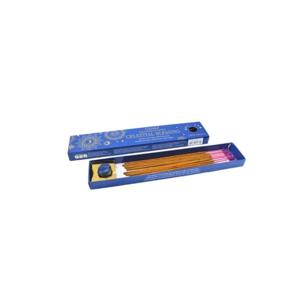 Incenso Goloka Manifestazioni BENEDIZIONE CELESTE - con Cristallo di LAPISLAZZULI - 15g