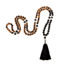 Collana Mala 108 perle occhio di tigre, pietra lavica