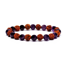 Braccialetto Mala elastico Rudraksha - Ametista