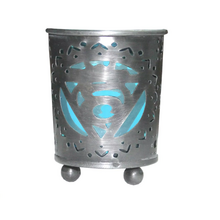 Porta Lumino Votivo 5°Chakra in metallo con bicchiere Blu