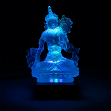 Statua di Tara Trasparente in vetro smaltato - 13cm con base luci led multicolore