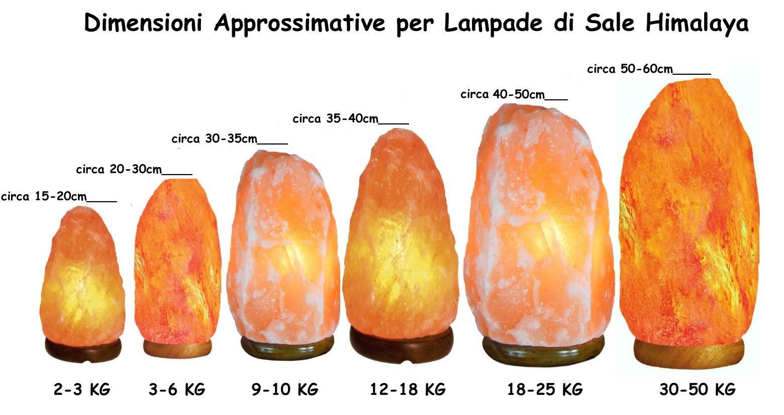 ATTENZIONE! Il peso e le dimensioni della lampada di sale possono variare, in quanto il prodotto è naturale e ricavato da un pezzo unico di sale, le misurazioni quindi possono variare sensibilmente.