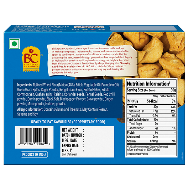 Questo è un prodotto di qualità di Bhikaram Chandmal, 100% vegetariano e prodotto in condizioni igieniche ottimali. Realizzato con ingredienti di prima scelta, proviene da Bikaner, nello stato del Rajasthan, in India.