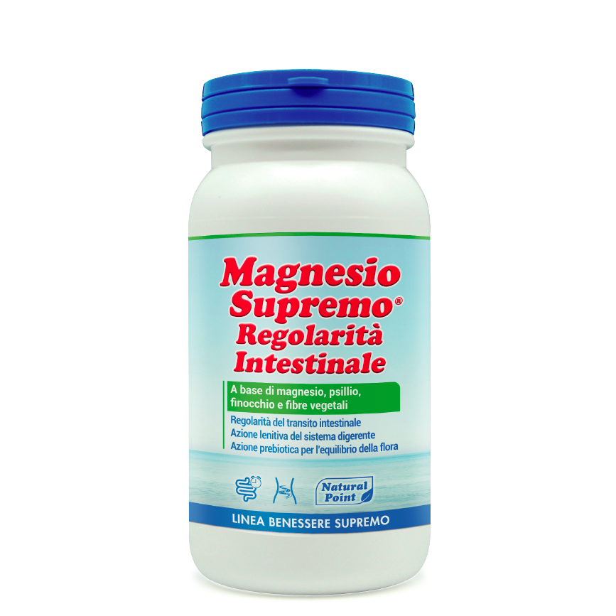 Magnesio Supremo Regolarità Intestinale, integratore alimentare, è una formulazione INNOVATIVA pensata per il benessere intestinale completo, grazie a 3 principali azioni.