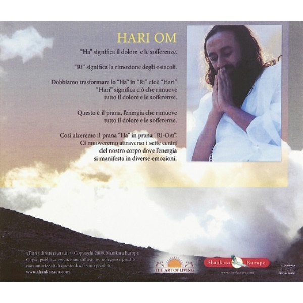 Questo File contiene una meditazione guidata da Sri Sri, dove viene cantato l'Hari Om. Facendo ciò l'energia vitale o prana, viene trasformata da l'energia “Ha” in energia “Ri-Om”. Facendo questa meditazione ci si muove attraverso i sette centri del nostro corpo dove l'energia si manifesta in diverse emozioni.