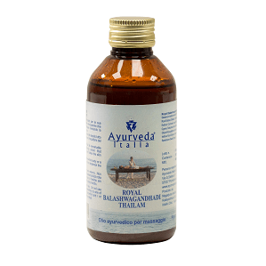 L’olio prende il nome dalle sue due piante principali: bala e aswagandha che gli conferiscono capacità nutriente e rinforzante, specie in caso di debolezza muscolare. Azione sui dosha: riequilibra vata Il massaggio con questo olio viene tradizionalmente consigliato per la sua notevole azione ringiovanente sulla pelle (azione rasayana). Rende la pelle morbida e luminosa, rallenta la degenerazione cellulare e rinnova i tessuti. In generale, è un ottimo tonico fisico e mentale ed ha un effetto positivo sul sonno.