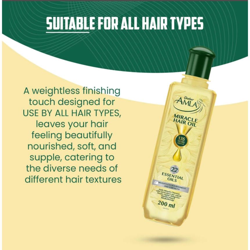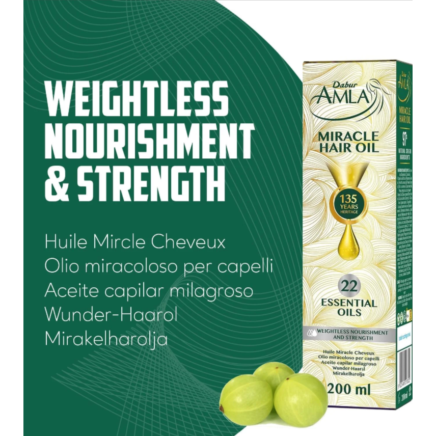 Dabur Amla Miracle Oil - 200 ml | Infuso con 22 oli essenziali ayurvedici
