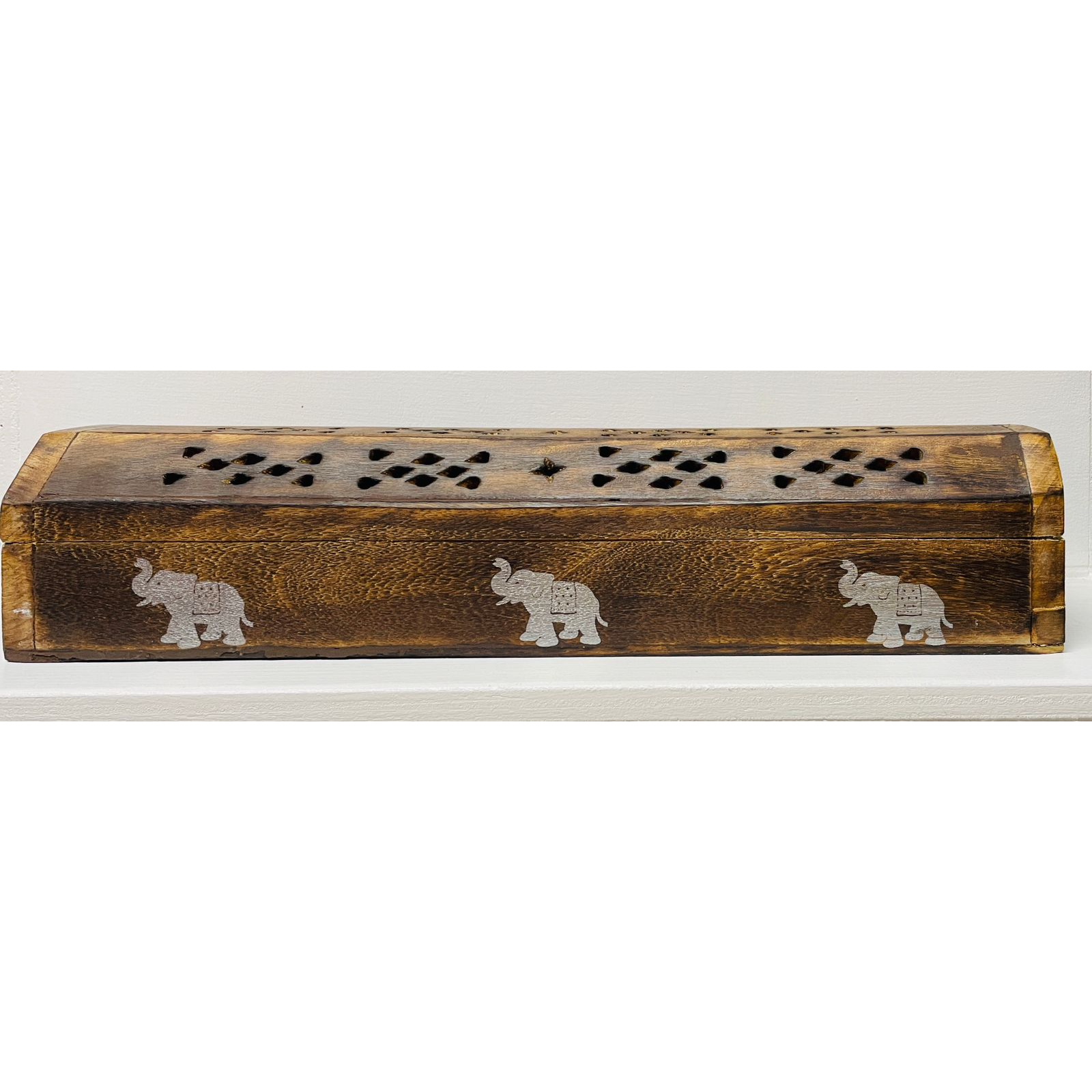 Dotato di fori per pali su entrambe le estremità; man mano che l'incenso brucia, la cenere cadrà direttamente nella scatola. Dotato, nella parte inferiore, di un apposito contenitore in cui riporre l'incenso di riserva.
