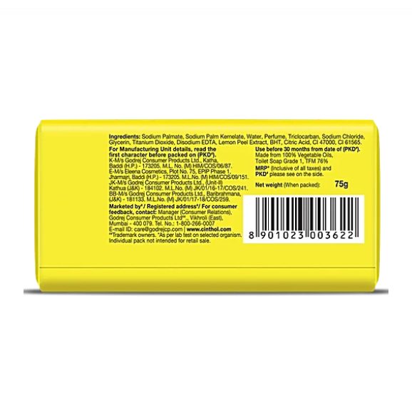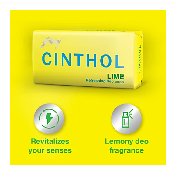 Con il sapone da bagno Cinthol Lime, ogni bagno è un nuovo inizio. Lasciati coccolare dalla bontà del lime con questo sapone da bagno. La sua fragranza al limone rivitalizza i sensi per regalarti un'esperienza di bagno fantastica. Il sapone da bagno Cinthol Lime ha un delizioso profumo agrumato che persiste per tutto il giorno e lascia la pelle fresca e rigenerata per tutto il giorno. Con il sapone da bagno Cinthol Lime, essere vivi è fantastico. Esplora l'ampia gamma di saponi rinfrescanti Cinthol disponibili in altre 4 varianti: Health+ Cool Deo e Original.