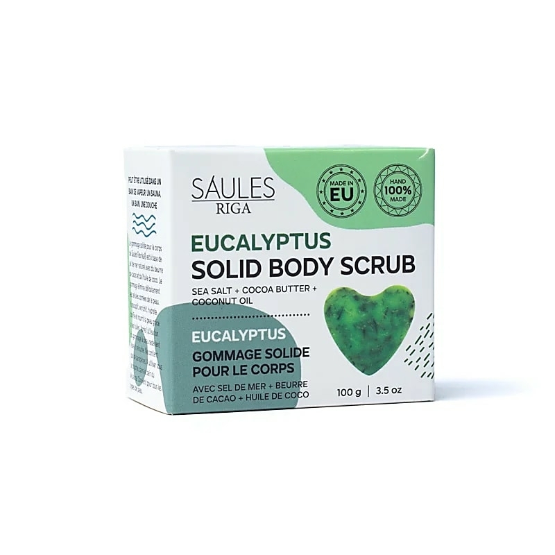 Il sapone solido scrub corpo di Saules Fabrika è realizzato a mano al 100% con sale marino naturale, burro di cacao e olio di cocco. Di comode dimensioni, esfolia, nutre e rassoda la pelle a casa, in palestra o ovunque ti trovi. Arricchito con equiseto di campo, per un nutrimento extra della pelle.