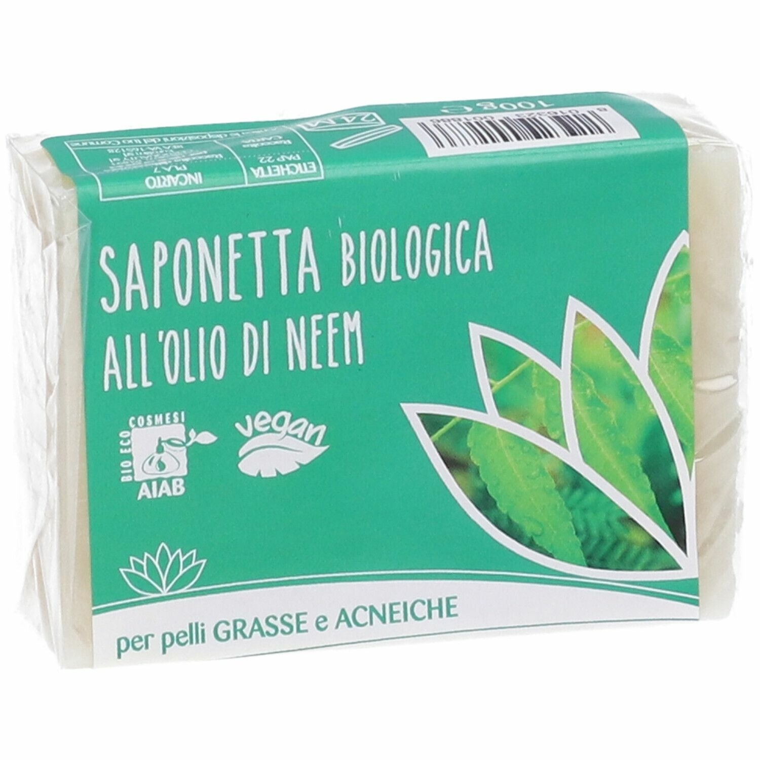Saponetta Biologica All'Olio di Neem, adatta a pelli grasse e acneiche, certificata EcoBio AIAB.