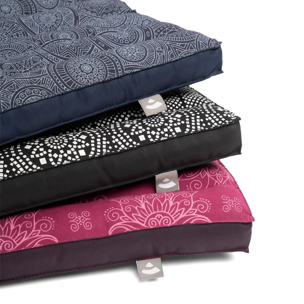 Per un facile trasporto, il cuscino da meditazione da viaggio ha una tasca e una pratica tracolla. La parte inferiore è in nylon idrorepellente e di facile manutenzione.