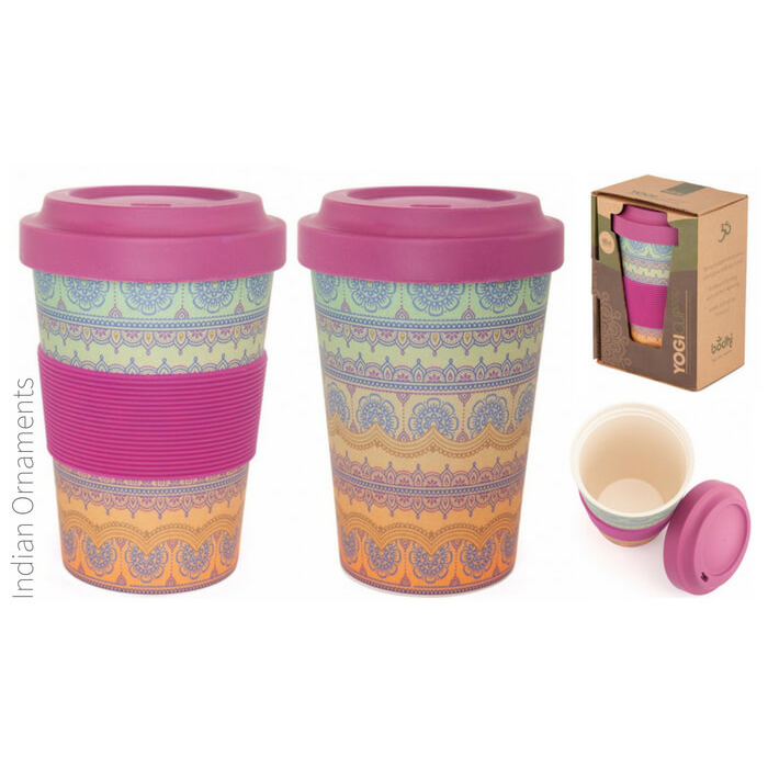 Stiamo mettendo fine ai rifiuti di carta con la nostra tazza di bambù riutilizzabile YogiCup 2 Go Indian Ornaments
